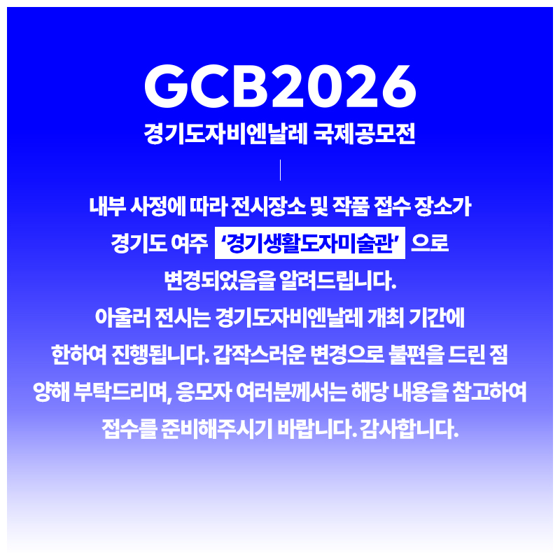 | GCB 상 | 46점 내외 | - | 상패, 상장, 도록 및 자료집 | - |